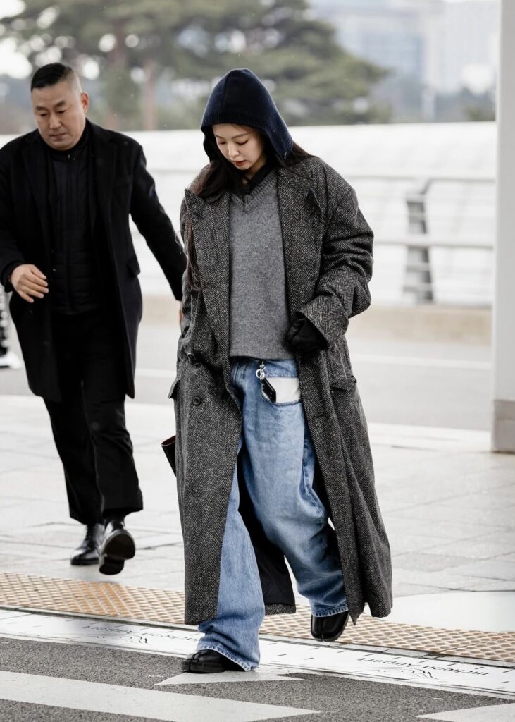 空港という移動の場でもムードが崩れないのがジェニーの強み。人気と話題性の両方で常に注目される存在だ。